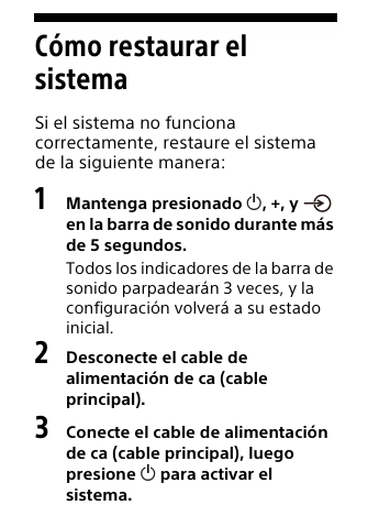 2. Restablecer el parlante Sony HT-S100F